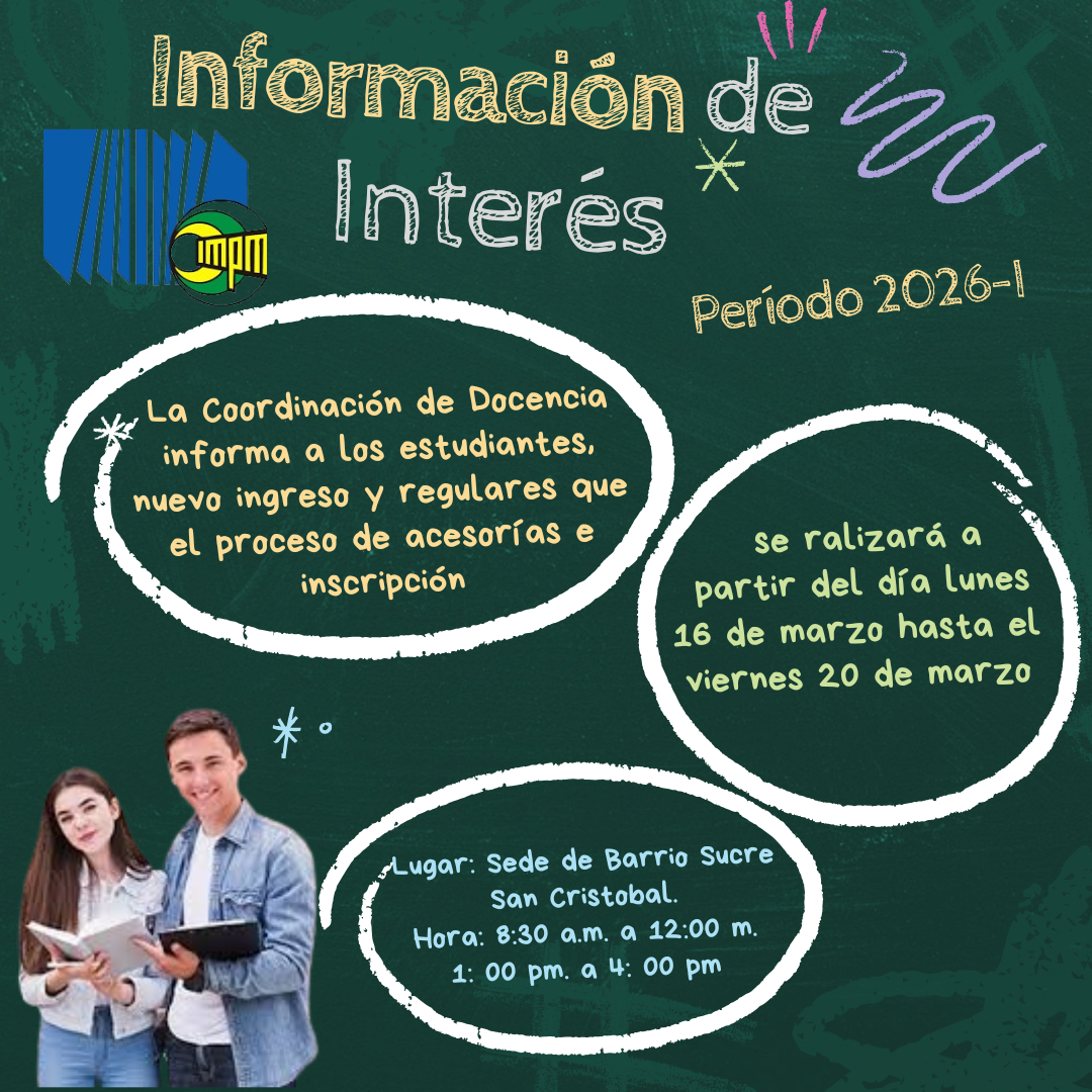 Estimados participantes interesados en cursar estudios de pregrado en la Extensión Académica San Cristóbal, actualmente nuestra universidad UPEL-IMPM está realizando el proceso de registro y preinscripción, cualquier información adicional la puede consultar en: